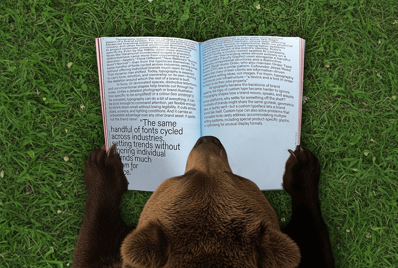 Another key point revolves around speed, the pace at which typefaces are created and whether they truly need to exist. Elizabeth Goodspeed reflects on how the boom of custom fonts in branding has shortened timelines and, as a result, often led to typefaces lacking a clear purpose or distinction beyond bypassing licenses. Compressing such a complex process into the fast turnover of branding inevitably exposes its limits. Ideally, this should prompt studios and designers to ask when it’s worth developing a custom typeface. Realistically, though, and this might be our prediction, we’ll continue to see type used in projects as a blend of scattered intentions.